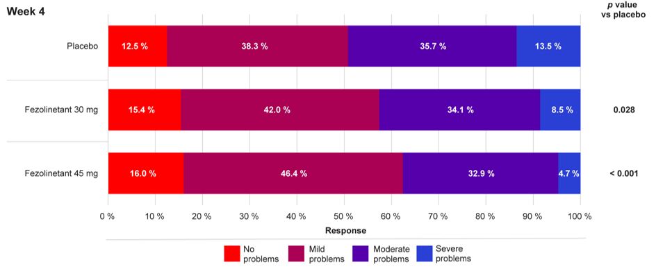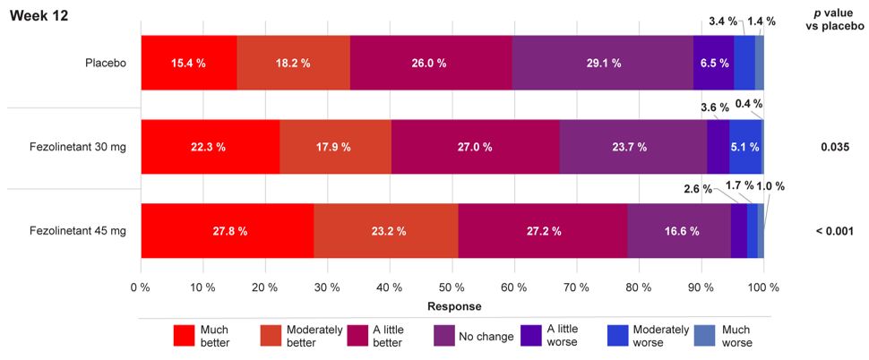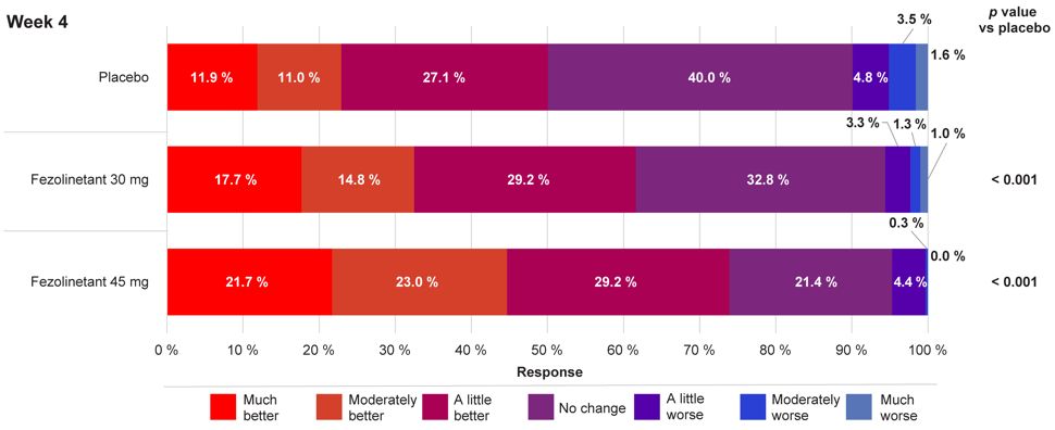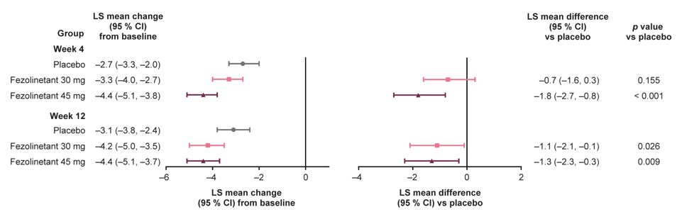 Fezolinetant 30 mg: n = 339, fezolinetant 45 mg: n = 341, placebo: n = 342.